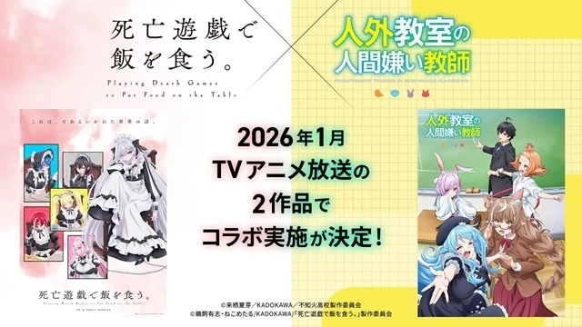 In conjunction with MF Bunko J's “Autumn School Festival 2025” held today, the TV anime “The Human-hating Teacher in the Non-Human Classroom” and the TV anime “Eating at the Game of Death” which will also start broadcasting from January 2026. ' has been lifted from the ban on collaborations during the broadcast period. Please be sure to pay attention to this collaboration as a work of MF Bunko J, which will enliven the winter cool together.