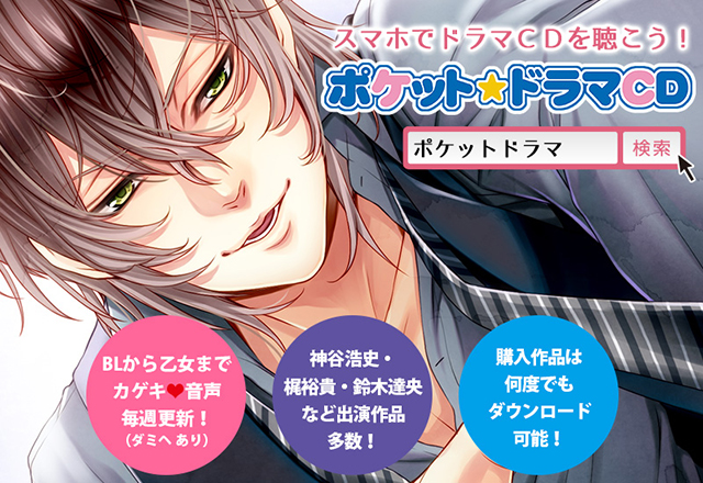 “Pocket Drama CD (PokeDora)” is a drama CD distribution service that can be enjoyed on smartphone devices (Android and iPhone).